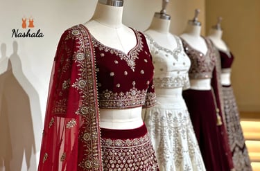 At Nashala, we specialize in making custom wedding dresses for ladies. We can make you a completely unique bridal costume that meets your vision. Our skilled designers make wedding dresses that fit your personality and wedding theme. They do everything from coming up with ideas and picking out fabrics to taking exact measurements and sewing them together perfectly. Nashala makes sure that every bridal lehenga, wedding gown, or Indo-western dress is made just for you with the best craftsmanship, a perfect fit, and beautiful details.